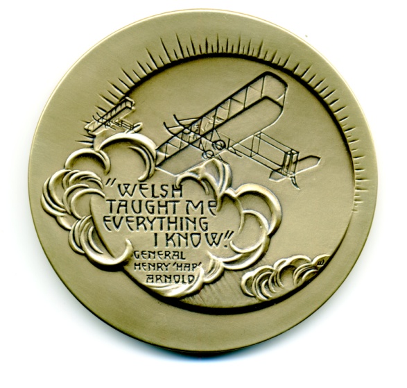 In his autobiography, Global Mission, General Henry Arnold wrote of Welsh, “He taught me everything I know,” which is inscribed on the reverse of the medal.